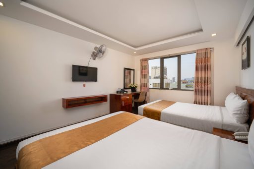 Family Room has an area of 28 sqm, including 02 beds of 1.6m. The room has windows overlooking the city and a bit of the sea.